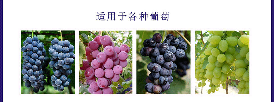 主要針對(duì)紅提、夏黑、戶(hù)太八號(hào)、藤稔、巨峰、紅寶石、陽(yáng)光玫瑰、維多利亞、克倫生、醉金香、京亞、玫瑰香、白雞心、美人指、金手指等品種生長(zhǎng)過(guò)程中出現(xiàn)的果粒大小不均勻,著色不均勻,裂果,僵果、掉粒嚴(yán)重,成熟不一致,穗形不美觀果,不耐儲(chǔ)存且貨架期短等問(wèn)題!