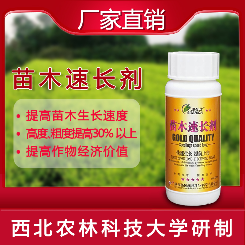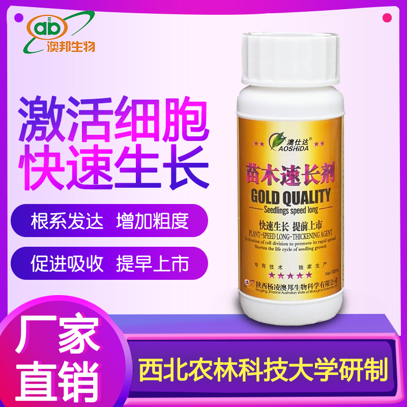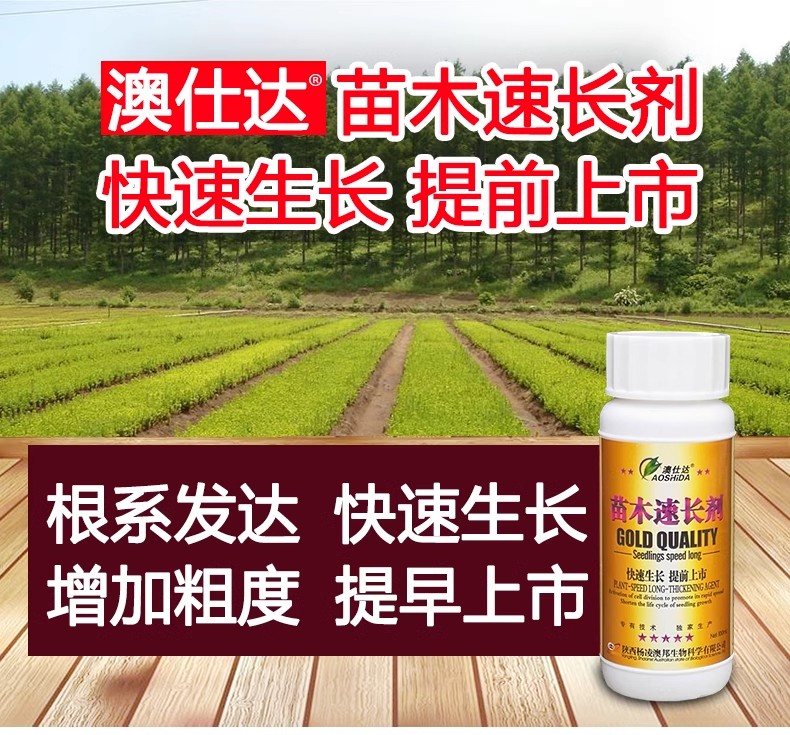 本品是西北農(nóng)林科技大學(xué)專家根據(jù)各種苗木的生長特性及細(xì)胞分裂原理,經(jīng)過十幾年的潛心研究發(fā)明的一種促使苗木快速生長的高科技產(chǎn)品。本品打破了樹體細(xì)胞分裂原始生長規(guī)律,激活細(xì)胞促使其快速擴(kuò)散分裂,并提高苗木對水肥的吸收和利用轉(zhuǎn)化能力,促使苗木健壯快速生長,使用后根系發(fā)達(dá),須根明顯增多,吸收能力加快,葉片翠綠,高度粗度比沒有使用本品的增加30%—50%(使用本品10天左右可以看到明顯效果)??s短苗木生長年限、周期、可使苗木提前嫁接提前出圃上市,大大提高了苗木的商品經(jīng)濟(jì)價值。