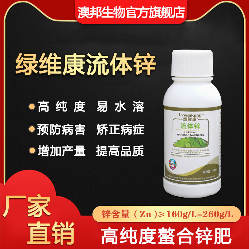 綠維康流體鋅采用糖醇螯合技術(shù),精制而成的一種高純度螯合鋅肥(Zn≥160g/L),速溶于水。并添加助劑噴施在植物上,能很好的黏附在其表面,快速被植物的葉片、枝莖、花果吸收利用,可有效預(yù)防作物缺鋅造成的小葉、黃葉、生長受阻、植株矮小等生理性病害,快速矯正缺鋅癥狀,增加作物產(chǎn)量,提高品質(zhì)。
